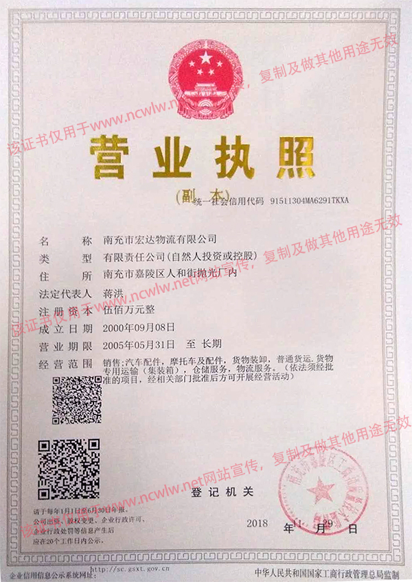 南充物流網(wǎng)(www.tdbiotech.com) 南充市宏達物流有限公司營業(yè)執(zhí)照