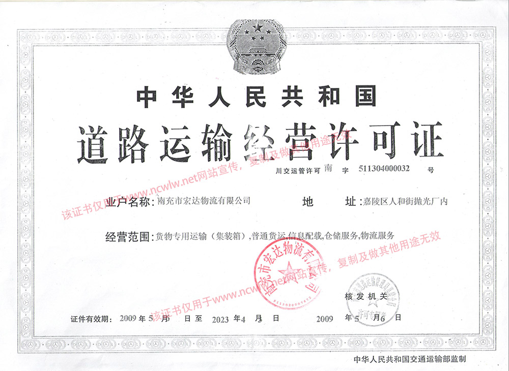 南充物流網(wǎng)(www.tdbiotech.com) 南充市宏達物流有限公司道路運輸經(jīng)營許可證